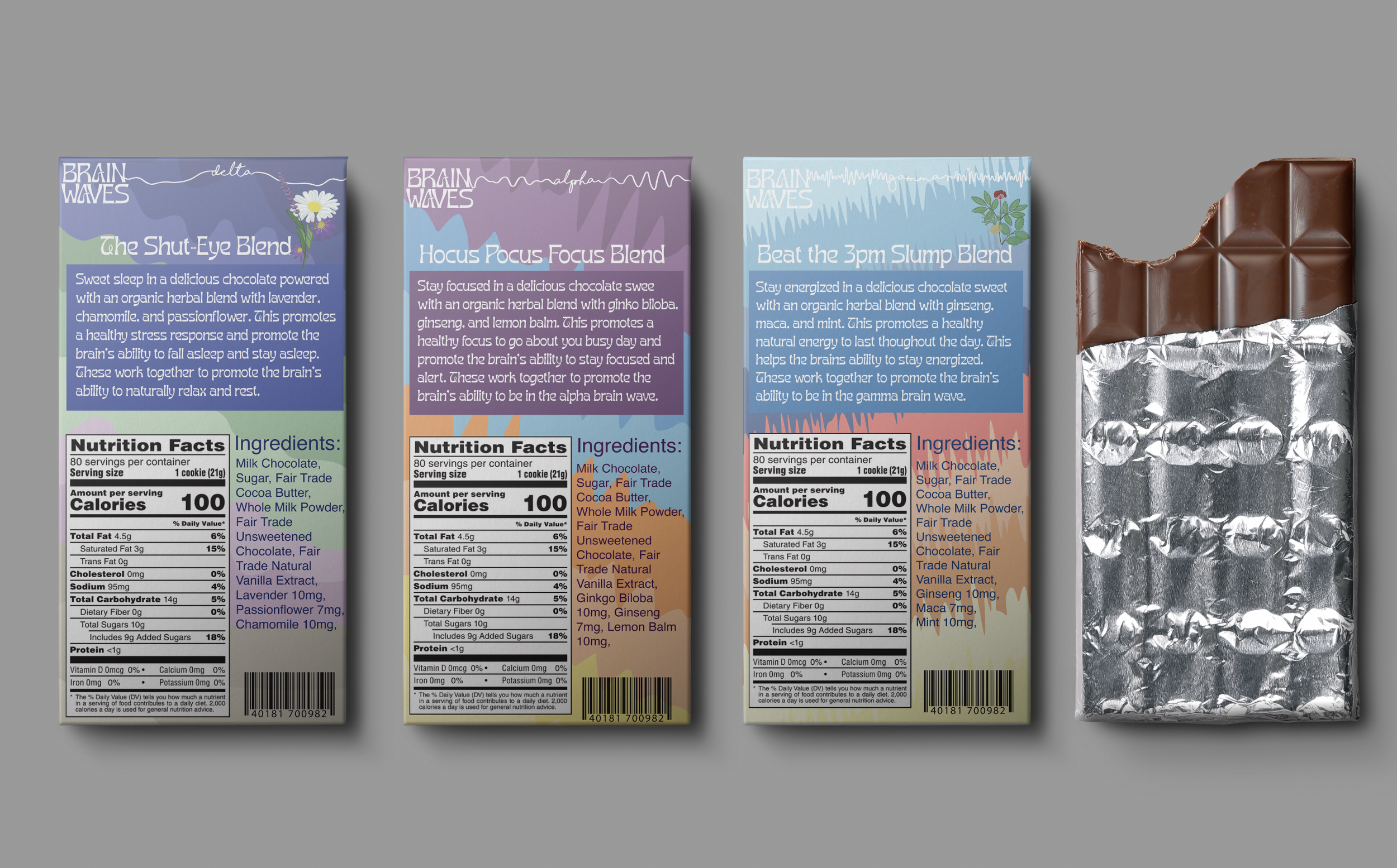 Brain Waves is a health-conscious chocolate brand, you can have a milk chocolate bar for each time of the day to help you push through. Brain Waves offer energy, focus, and sleep, different herbs power these chocolates. Brain Waves offers different forms of chocolate, such as a chocolate bar, mini bites, and powders. This chocolate brand focuses on each brain wave, delta, alpha, and gamma. Delta waves are the slowest recorded brain waves in human beings. They are associated with the deepest levels of relaxation and restorative, healing sleep. Alpha waves induce feelings of calm, increase creativity, and enhance your ability to absorb new information. Gamma oscillations control the connectivity between different brain regions, crucial for perception, movement, memory, and energy.
